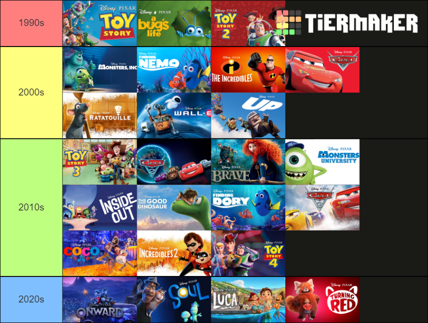 . Since I started making Tier Lists I thought Id make some. Apr 15 2022. My Pixar Movie Tier List.